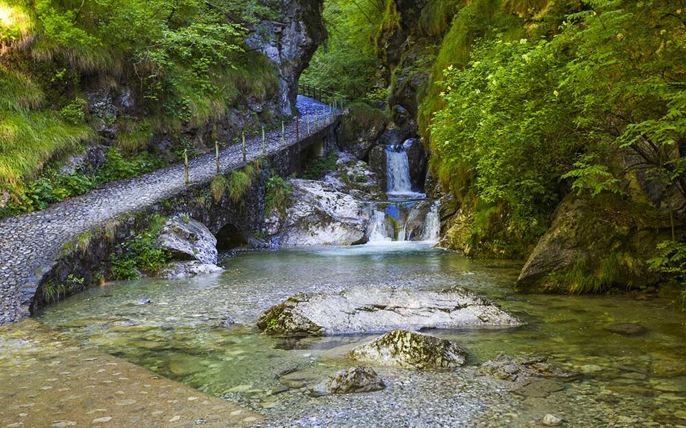 Un piccolo paradiso fatto di torrenti cristallini, gole scolpite dall’acqua e cascate naturali, dove il rumore del fiume accompagna il cammino tra boschi e rocce.